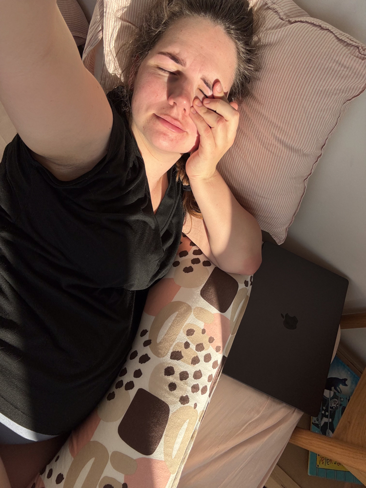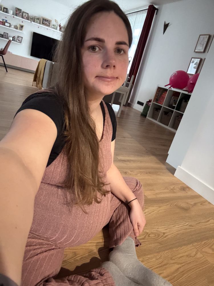 Guļu uz muguras un ūjinu cauri kontrakcijām. Mēģinu atslābināties pa starpu. Pēc katras kontrakcijas saku Rihim, ka vairs negribu. Šajā pozā fiziski jūtu, kā plešas vaļā dzemdes kakls. Jūtu arī brālīša galvas spiedienu uz leju. Skatos uz savu vēderu un joprojām neticu, nesaprotu, kā viņš var būt vēderā, bet vienlaikus arī dzemdes kaklā. Iebāžu pirkstus un mēģinu viņu sataustīt. Nekā.