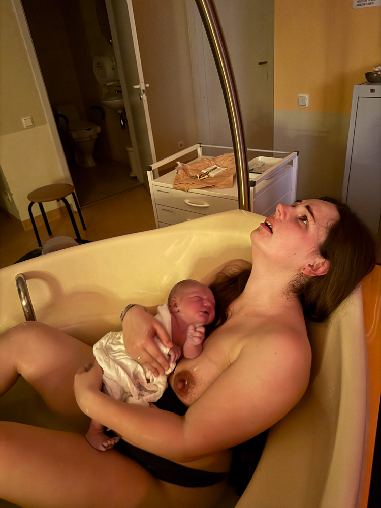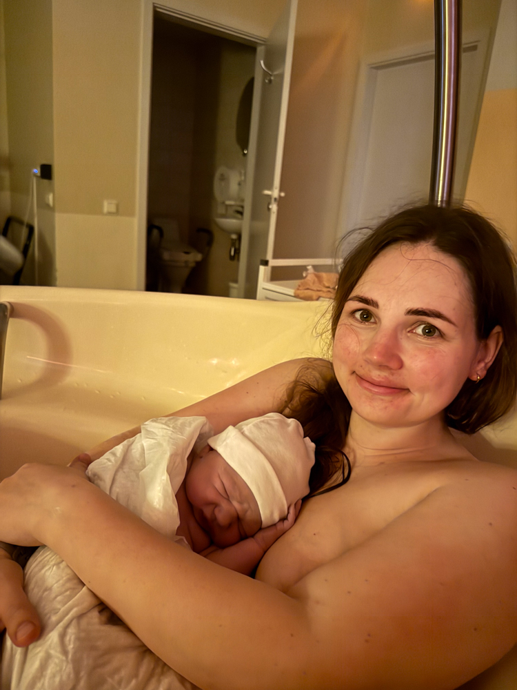 Piecas nedēļas vēlāk es atrados dzemdību vannā un nekādi nespēju sevi pierunāt spiest. Man blakus bija mans vīrs un mana vecmāte. Viņi nevarēja piedzemdēt manā vietā, bet tur viņi bija. Man blakus.